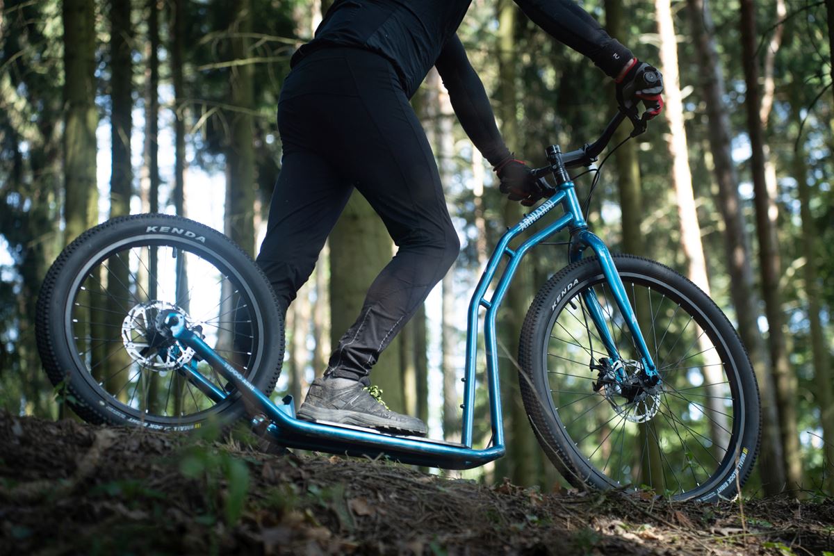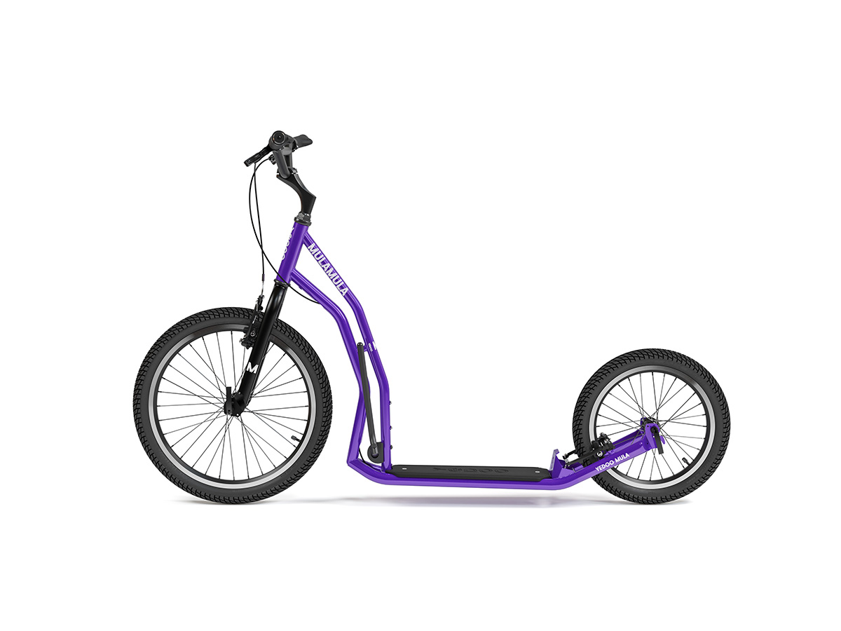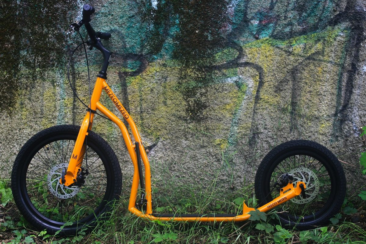 Yedoo Mezeq is a mid-size off-road scooter with disc brakes that can handle anything you throw at it. It has 20"/16" wheels, wider tyres, and a load capacity of up to 150 kg.