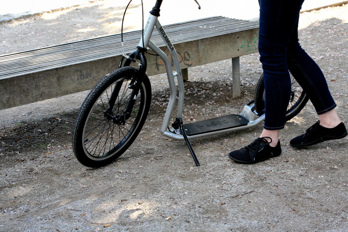 The steel frame and wide handlebars give you comfort and control, allowing you to relax and enjoy the rhythmic motion of each kick. Can you already see yourself on the road?