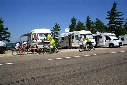 There were almost one million fans standing along the 20-kilometre-long route up the highest mountain of Provence, as estimated by the Czech Television. They began arriving there early in the morning in order to find a place that would offer them the best view of uphill ride of this year’s Tour de France racers. Some of them arrived with their caravans several days earlier, kept their caravans parked by the road, sat at the camping tables enjoying wine and food.