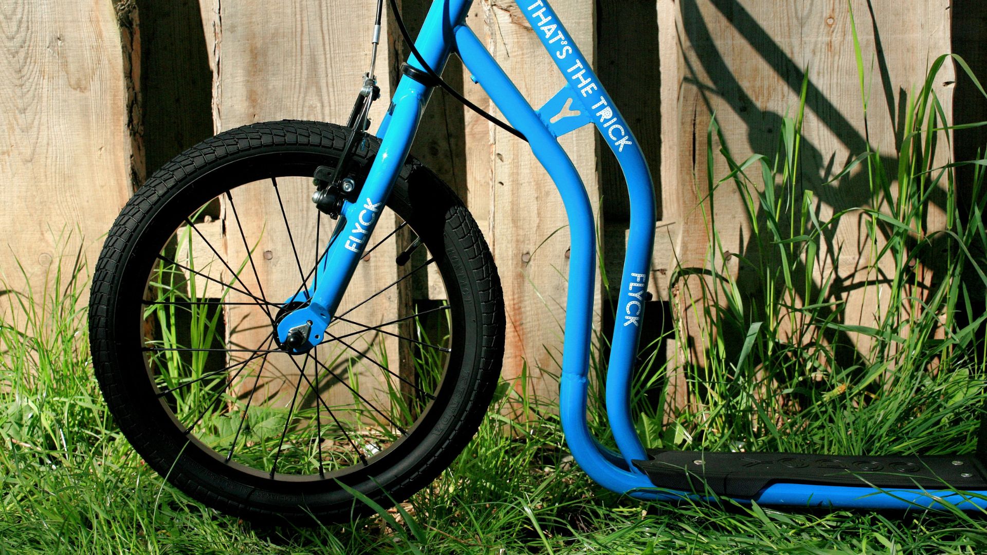 Promyšlená konstrukce umožnila nejen snížit celkovou hmotnost koloběžky, ale i zkrátit její délku. Díky tomu si Flyck i přes větší kola zachoval hravost a obratnost.