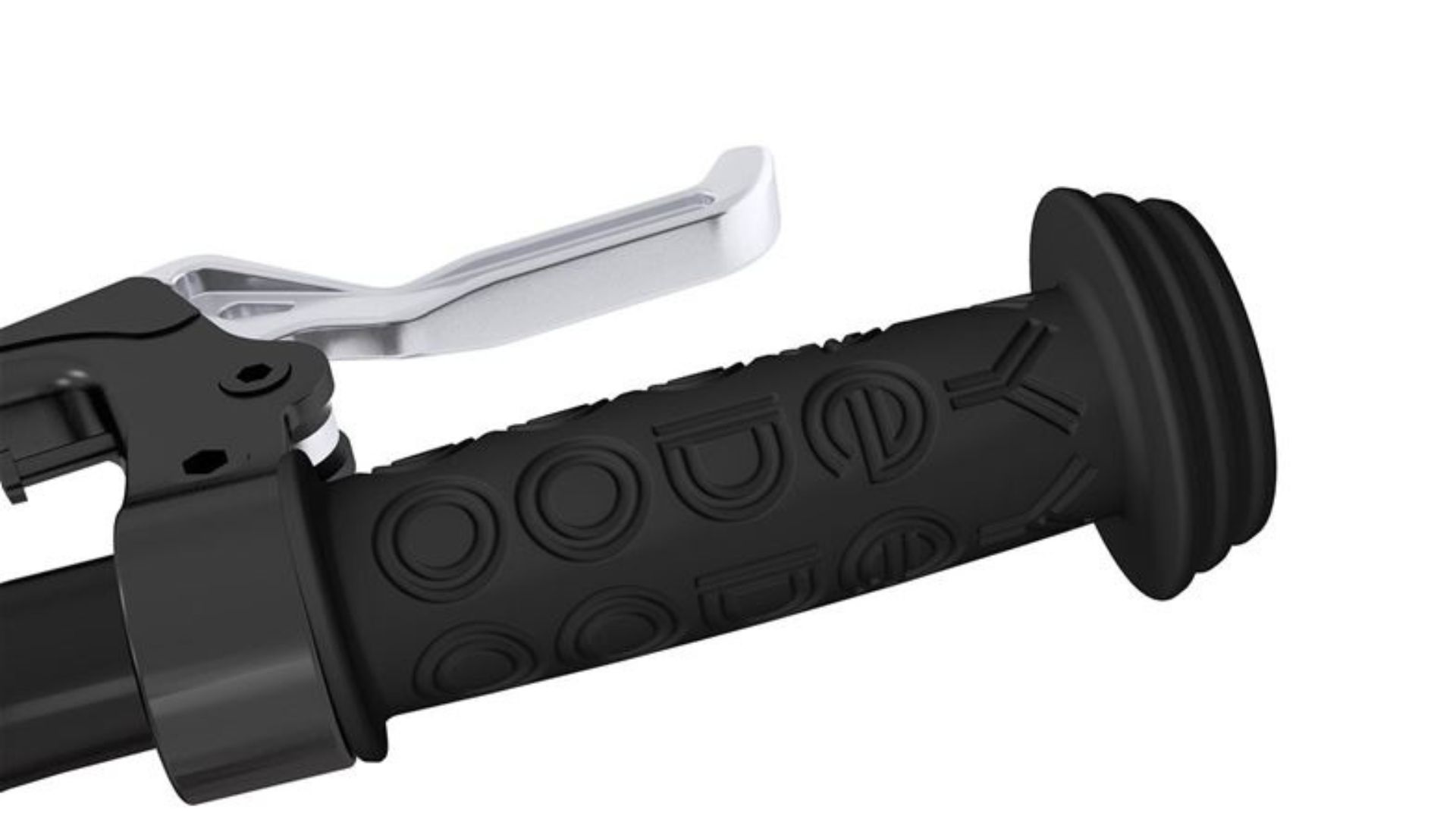 U gripů jsme pro jistotu nechali zesílené a rozšířené konce. To aby vydržely i drsnější zacházení, když děti v zápalu hry koloběžku jednoduše “odhodí“ na zem.